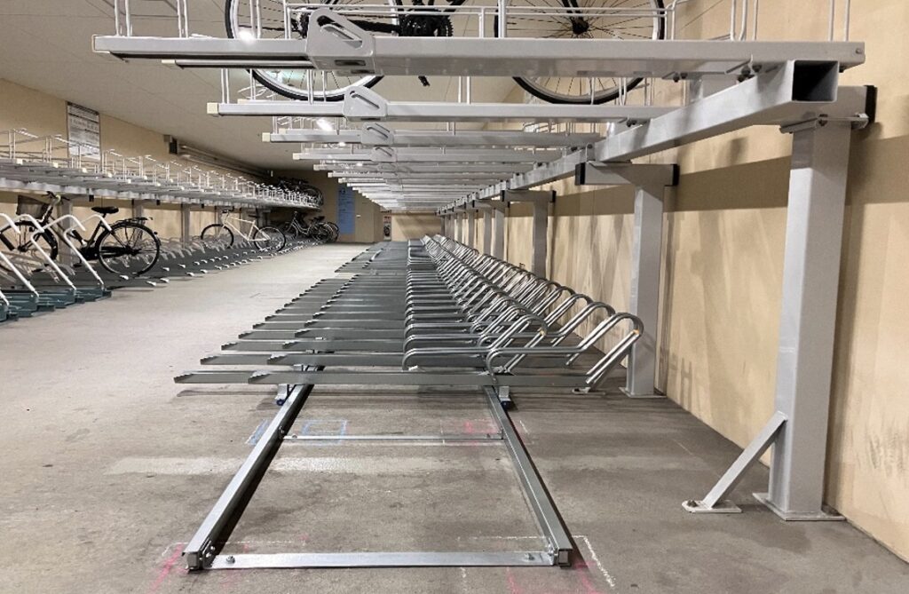 392台収容の大規模立体駐輪場を施工。サイクルコンベア1基を設置し、上階への自転車搬送を快適に実現しました。